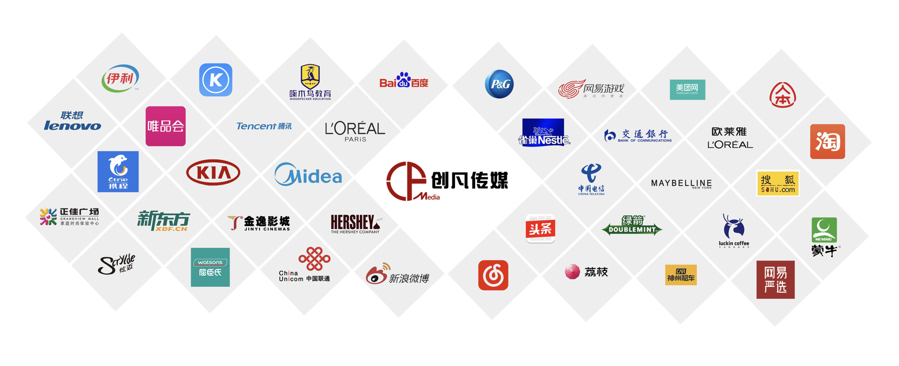 公司以“做品牌年輕化的好幫手”為使命,憑借敏銳的創(chuàng)意洞察、卓越的營銷策劃能力、豐富的活動經(jīng)驗和全方位的媒體資源,為企業(yè)提供高效、精準的一站式營銷推廣服務。已成為寶潔、騰訊、京東、中國聯(lián)通、字節(jié)跳動等世界500強品牌庫內(nèi)供應商。